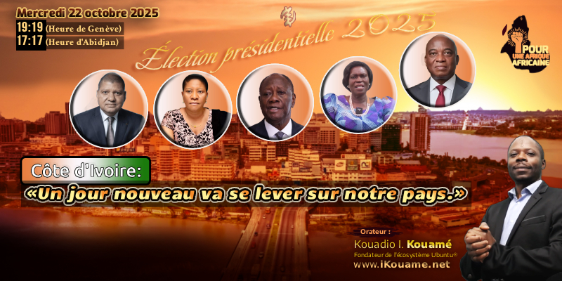 Ce message historique sera adressé au peuple de Côte d'Ivoire ce mercredi 22 octobre 2025 à 17h17 (heure d’Abidjan) / 19h19 (heure de Genève) par Kouadio I. Kouamé — fondateur de l’écosystème Ubuntu® et du Commun Politique « Akwaba ! Ré-évolution Ubuntu pour l’Afrique africaine ».